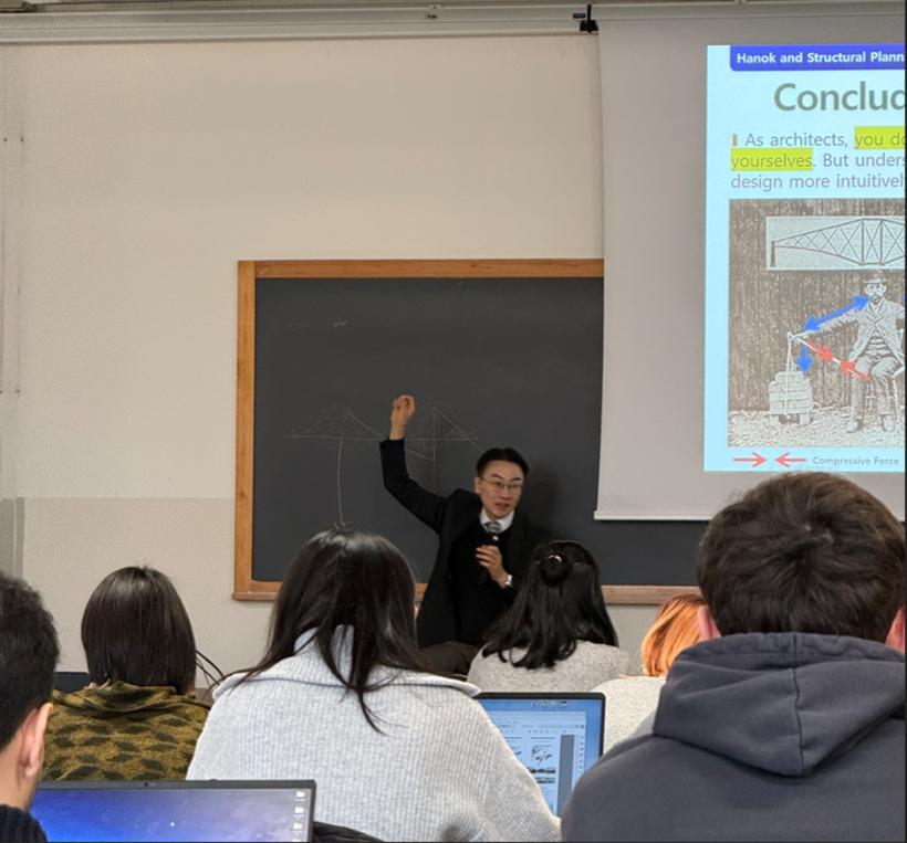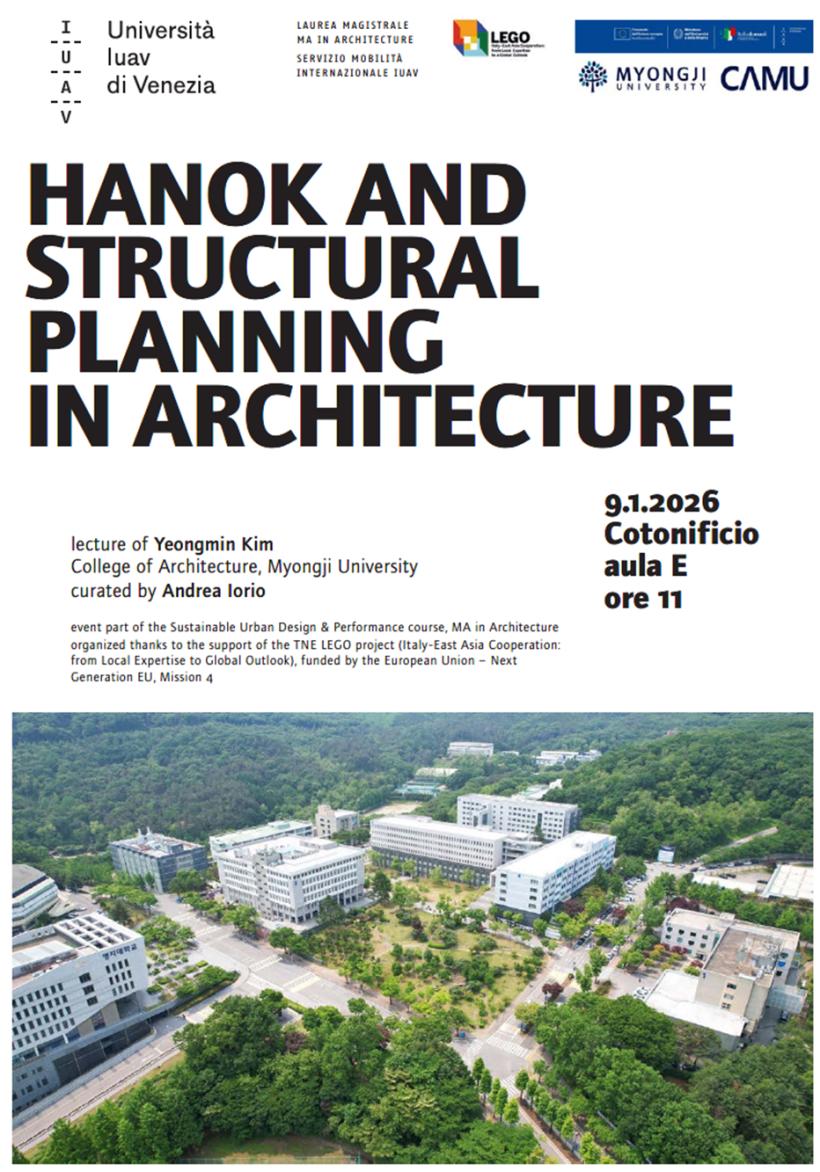 On Friday, January 9, 2026, Professor Yeongmin Kim of the College of Architecture at Myongji University delivered a special lecture entitled “Hanok and Structural Planning in Architecture” at the Università Iuav di Venezia (IUAV).