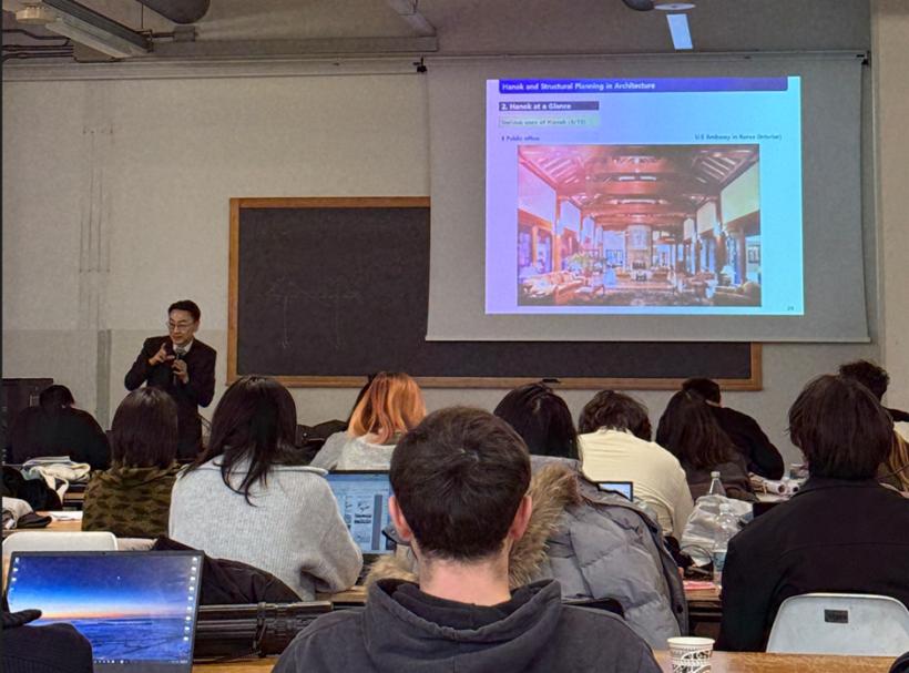 명지대학교 건축대학의 김영민 교수님께서 2026년 1월 9일(금) 이탈리아 베니스 대학교(IUAV)에서 “Hanok and Structural Planning in Architecture”라는 주제로 특강을 하였습니다. 본 특강에는 베니스 건축대학의 Andrea Iorio 교수님을 비롯한 석사과정 학생 50여명이 참석하였습니다.