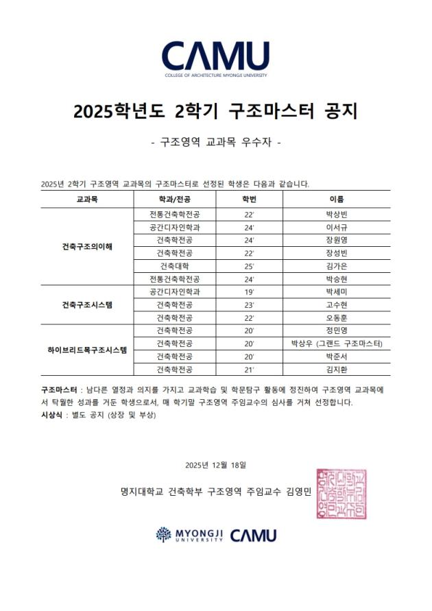 2025학년도 2학기 구조마스터 공지