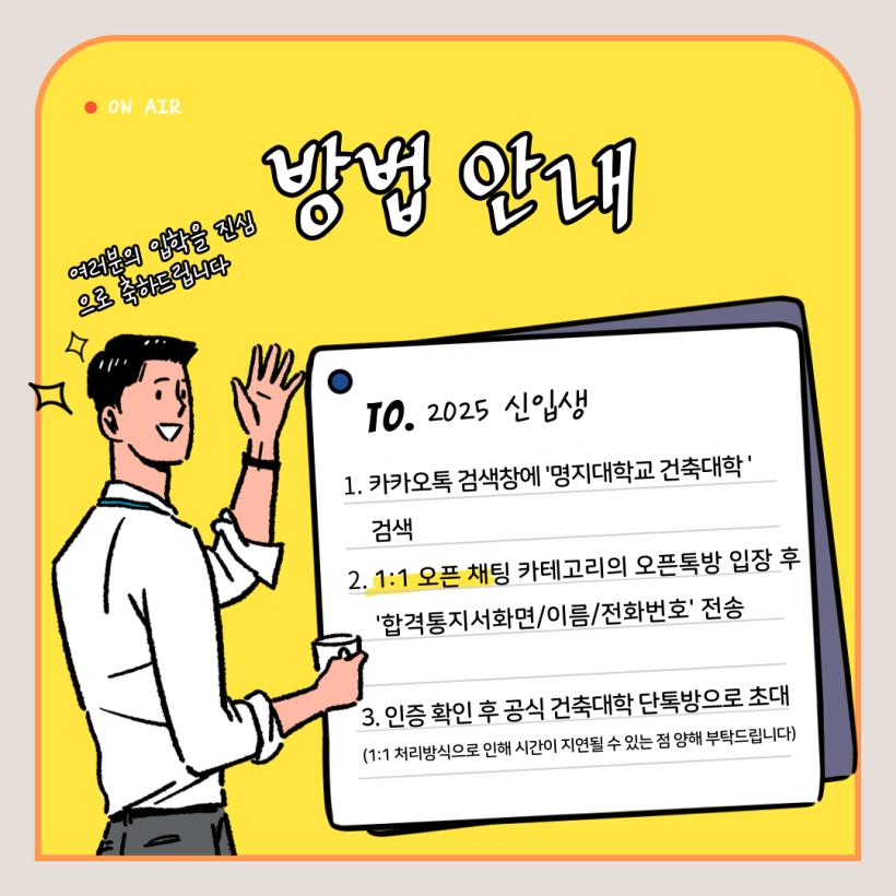 📣2025 명지대학교 건축대학 신입생 인증 오픈 톡방📣